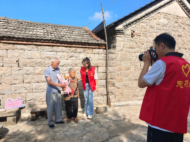 “结婚几十年了,还是第一次收到鲜花,俺们也好些年没一起拍过照片了,真是太感谢了!没想到在自己家里就能拍到这么有意义的照片。”一位刚拍完照的大娘凑在相机前查看预览,眼角眉梢满是幸福的笑意。拍摄过程中,志愿者们全程贴心服务,帮老人整理衣角、梳理发型,用细致关怀让每一户家庭都感受到温暖。